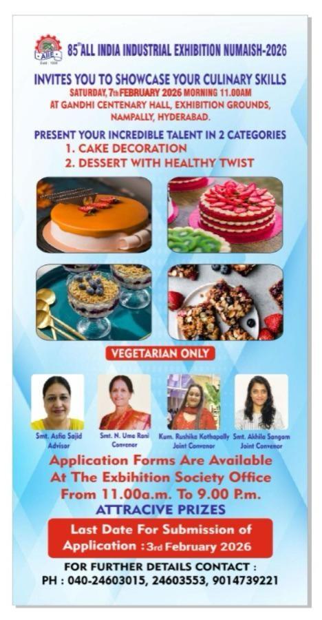 The annual All India Industrial Exhibition (Numaish), organized by the Exhibition Society, has been a permanent and celebrated feature of Hyderabad for more than eight decades, reflecting a rich legacy of tradition and continuity.