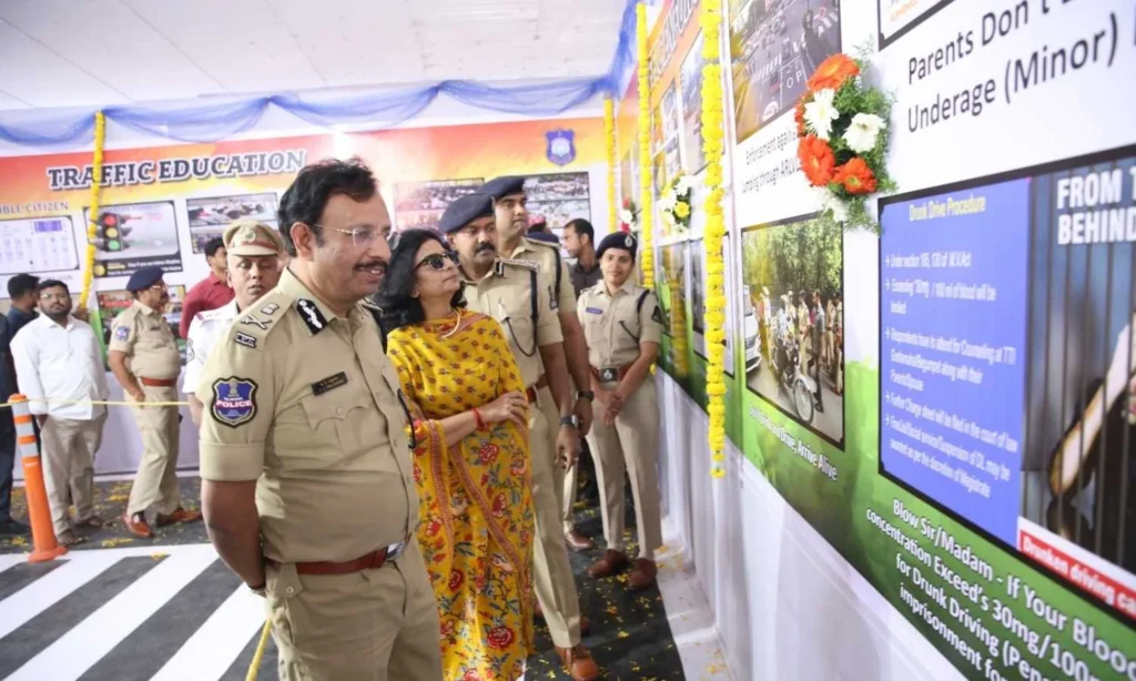Hyderabad, Telangana — Hyderabad City Police launched a comprehensive road safety and public safety awareness drive at the annual Numaish Exhibition, setting up dedicated stalls to educate visitors on traffic rules, women’s safety, cyber safety, and public security.